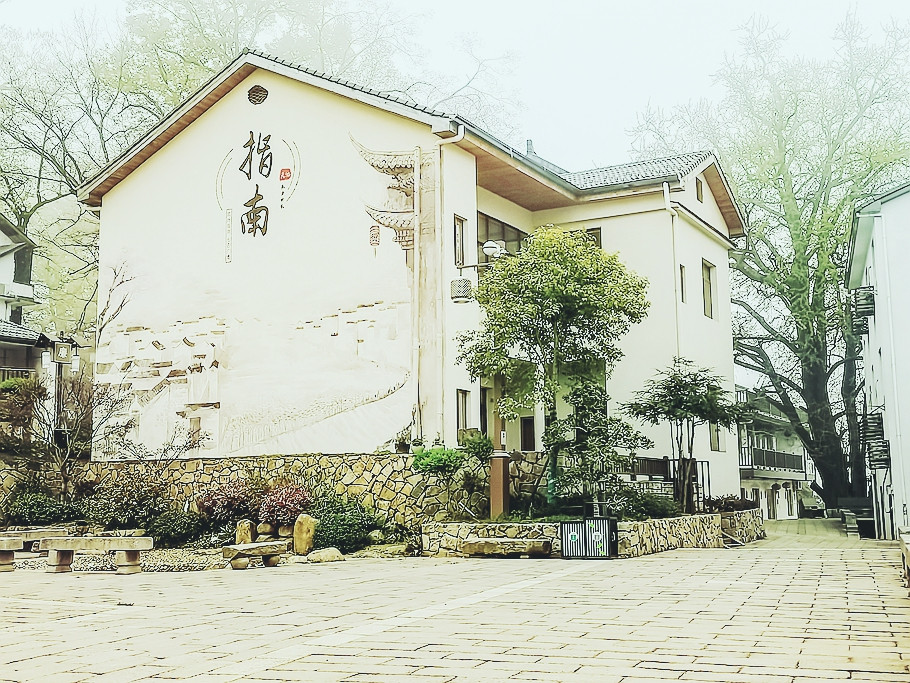 从莫家亭观景平台往下看,在指南村的半山腰坐落着一家民宿——遇见指南,这是一栋两层小楼。
