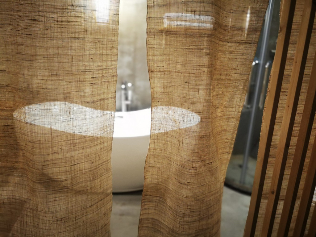 卫生间独立环保配置,用环保舒适的麻制作为隔断,