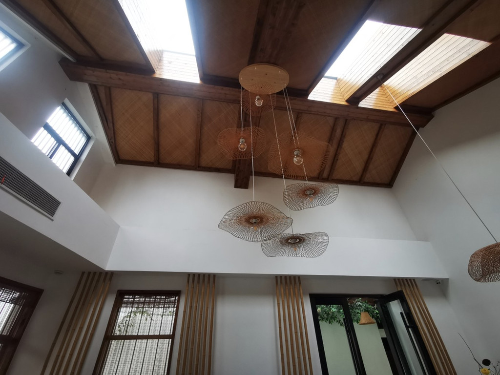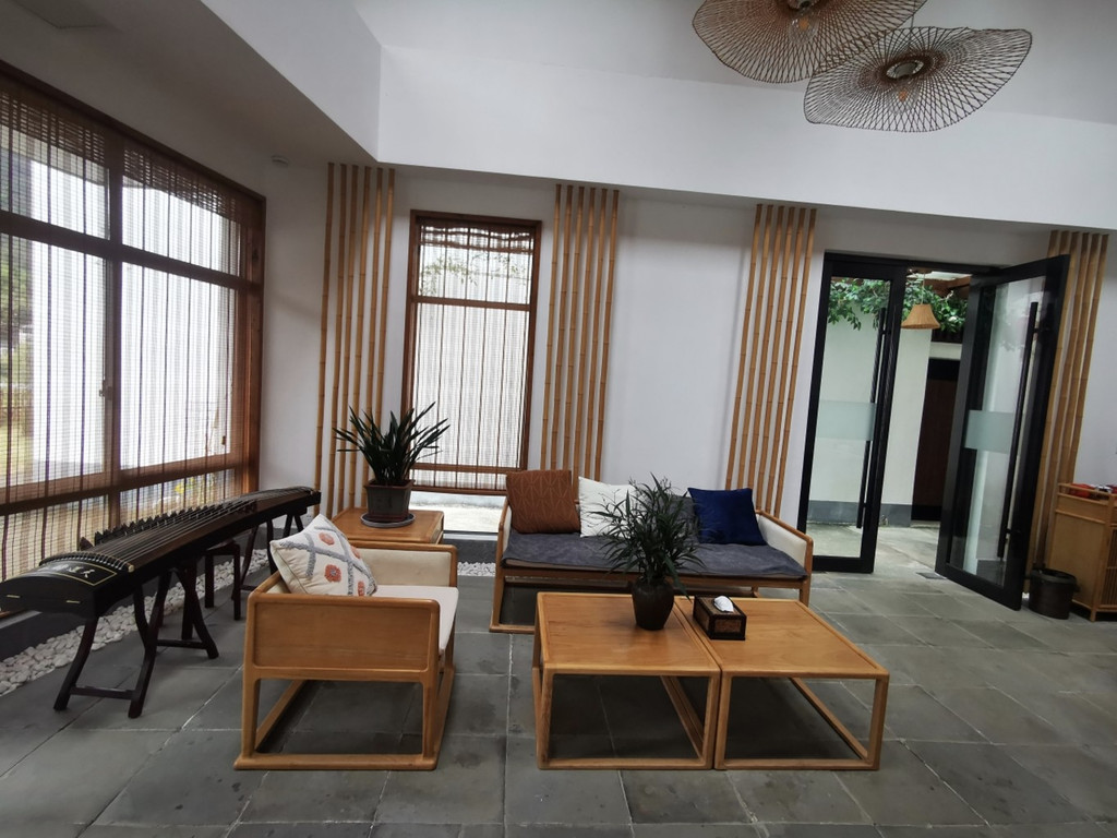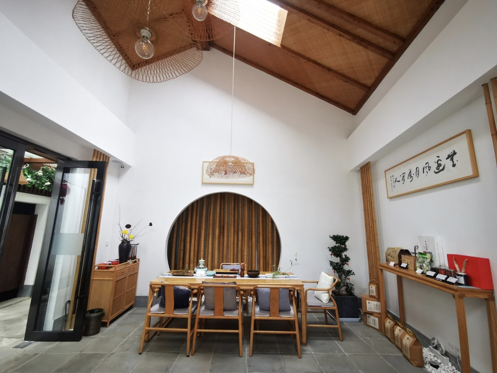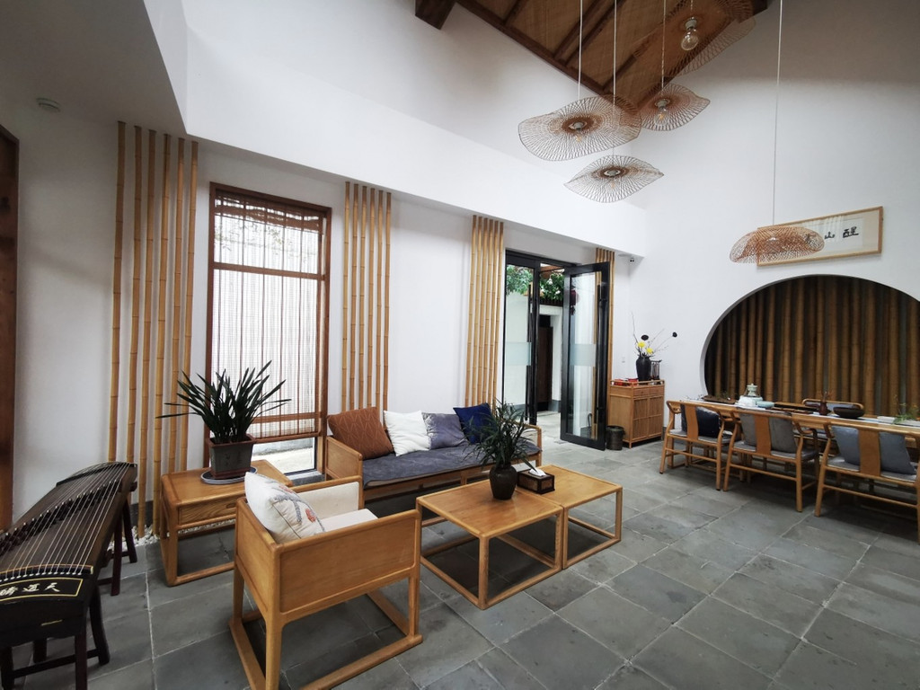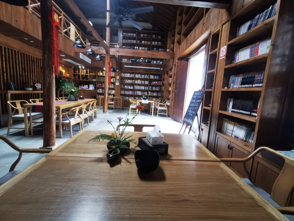 大厅为传统徽派建筑风格,布置雅致的书屋,