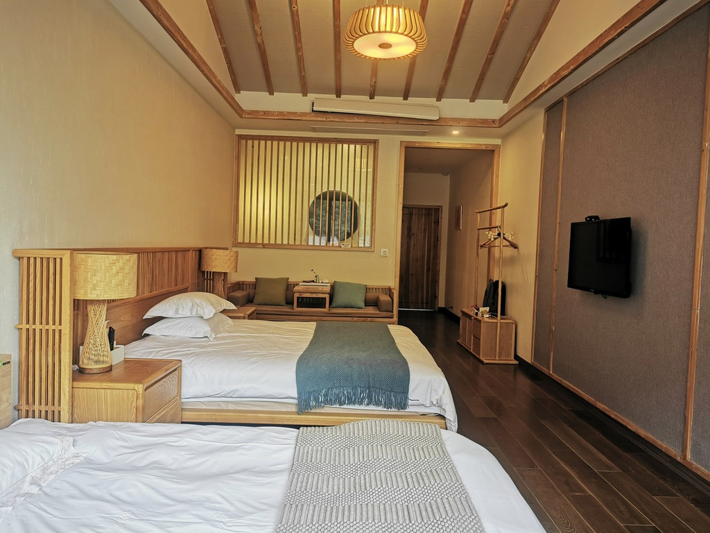 我入住的房间为亲子房,一个一米八的大床,一个一米五的小床,三口之家可以入住。