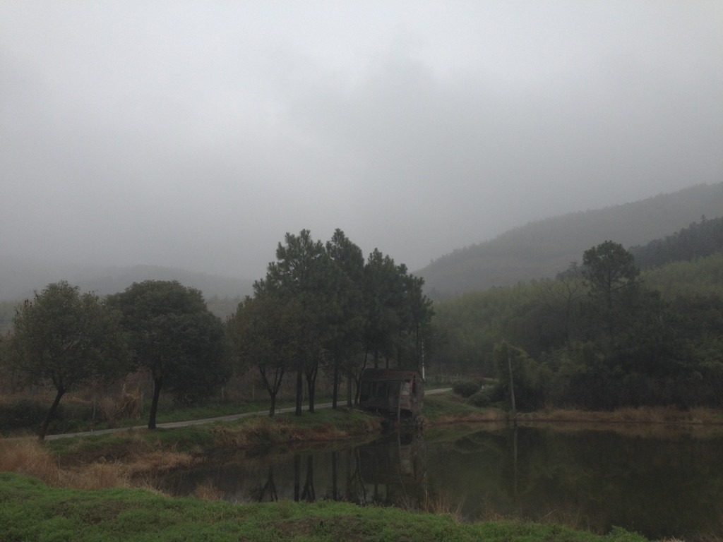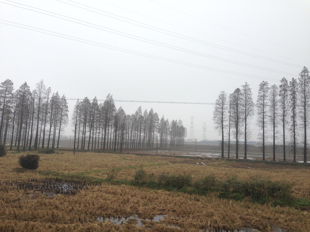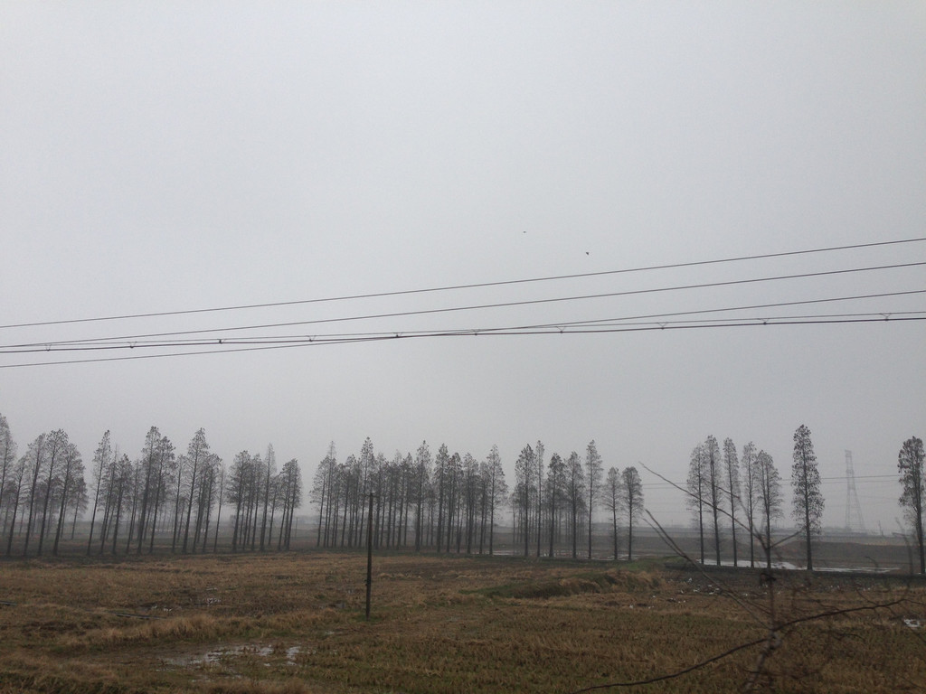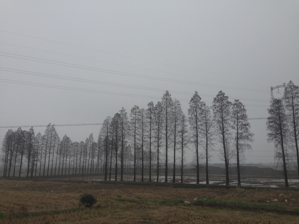 到了山下,车过一片杉林,忍不住又叫停了。这里房屋不算密集,视野开阔。草坪还没有返绿,一片枯色。但是背后就是东明山,那绿意仿佛淌过来了似的。不时又有一双白鹭掠过,看来东明这里越冬的白鹭不少,可见大冬天也不是太冷。