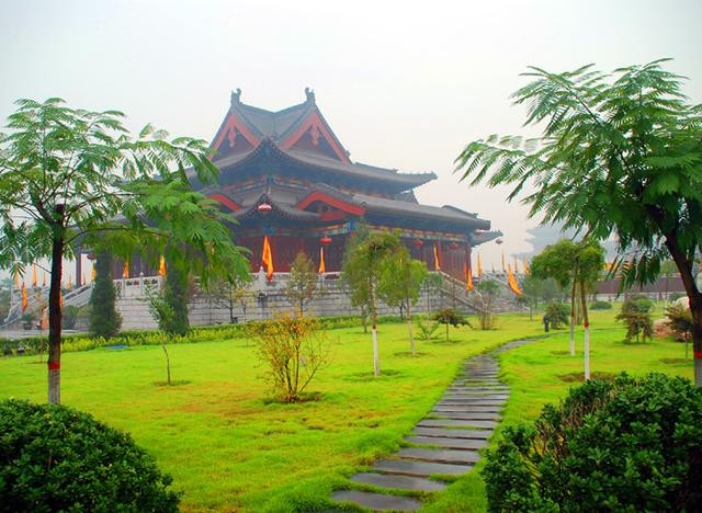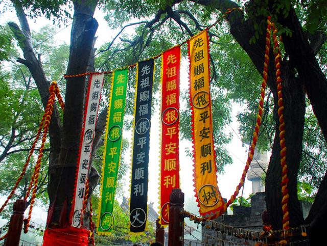 采用混凝土垫基,青石板铺面,肃穆庄严,可容纳万人祭典,称为万人广场,游人在这里既可体验殿堂的庄严,又可体验广场的壮阔。数十面迎风飘摆,上书“根”字的黄色旗帜布满了广场的周边,为广场又增添了几许庄重的气氛。