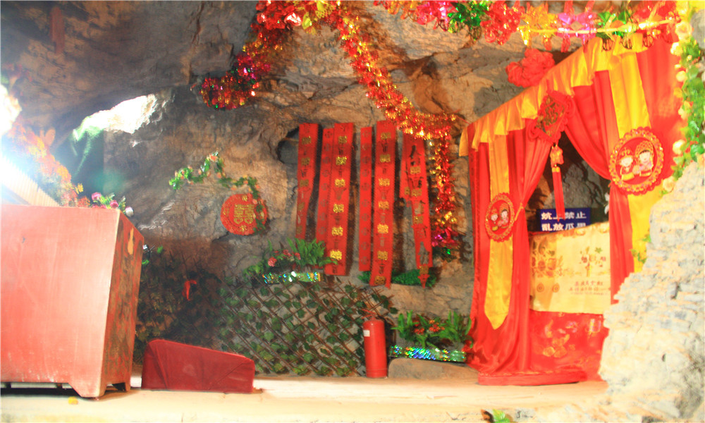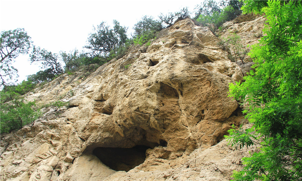 南北两处仙洞相呼应,两洞中间横卧一条深达50米的壕沟,也即峡谷,沟南称为南仙洞,沟北称为北仙洞,两洞间深沟隔断,无法逾越。