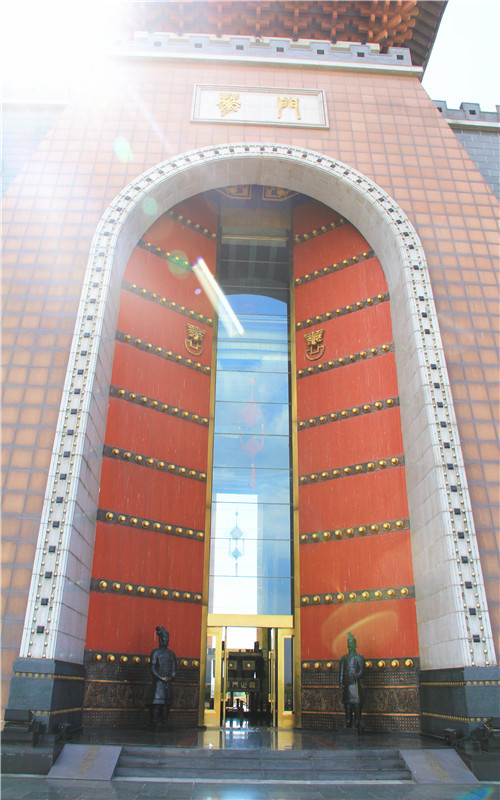 山西省临汾市华门景区是一座华夏文明纪念碑。山西南部是中华民族最古老的发祥地,可以说,中华民族的文明之门就是由尧舜开启的,而华门就是为纪念帝尧统一华夏、开启文明之功、展现中华民族历史源远而建设的。