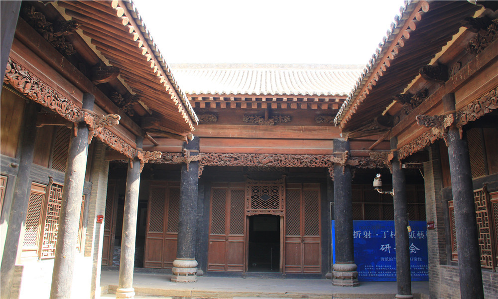 丁村清代四合院,院小房高,端庄大方,装饰华丽,注重雕刻,雕刻成组配套,栩栩如生。