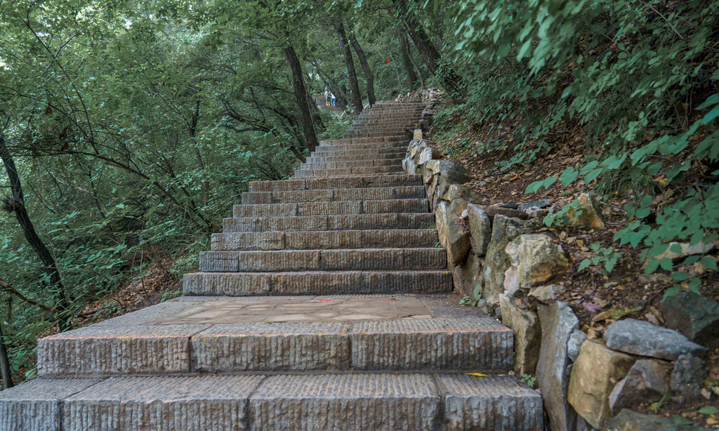 下了索道之后,虽然还要再走上几百米台阶道路,不过得益于茂盛的林木,这一段路走得并不会很累,反倒是凉风习习吹着很是怡人;沿途会经过一座土地庙,有兴趣的也可以去参拜一下,听当地人说很灵验~