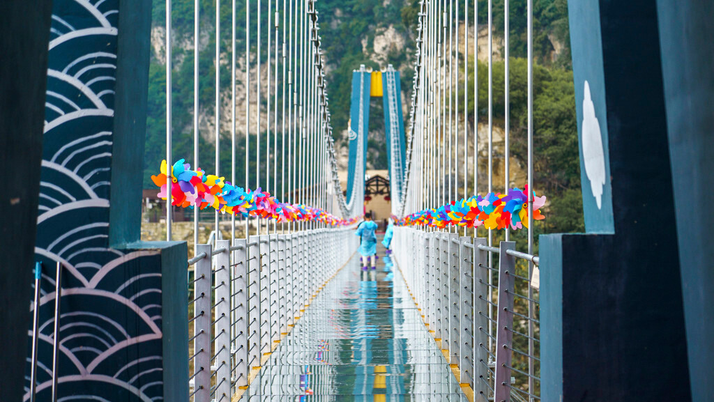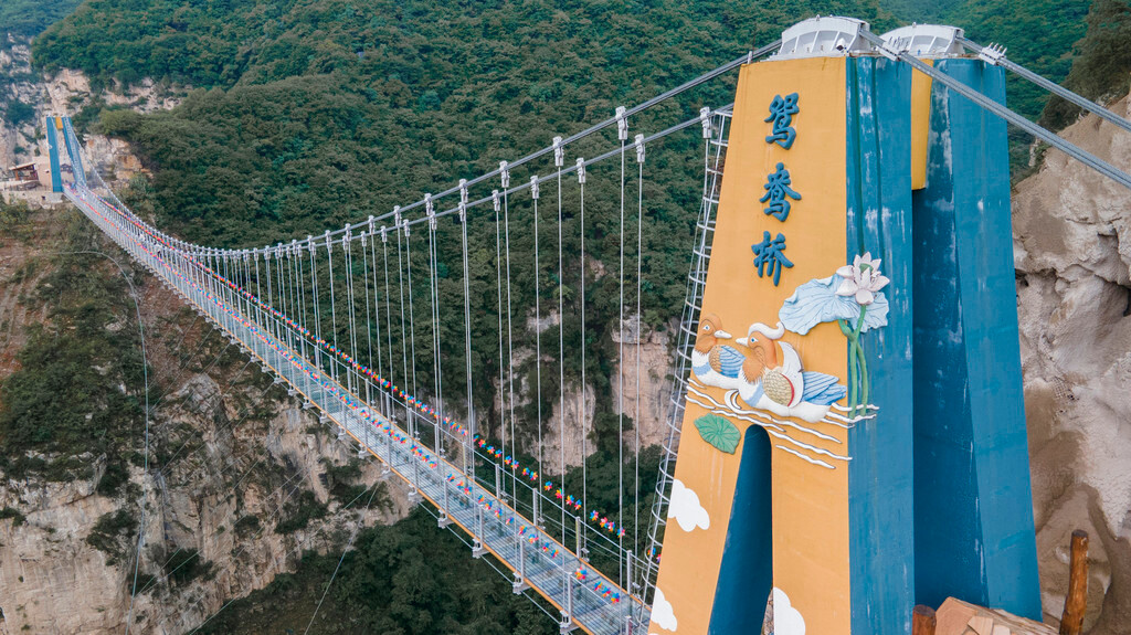 云丘山有许多刺激的娱乐项目,【鸳鸯桥】便是其中之一,这座位于云丘山半山腰的玻璃栈桥,刚好处于玉皇顶与冰洞两大核心景观之间的位置,通过玻璃栈桥还可以省下600米的山间步道距离,直通过去就是冰洞所在的地方,这样有美景、又省力的项目,自然是受到了大众的欢迎,成为云丘山有名的网红项目。