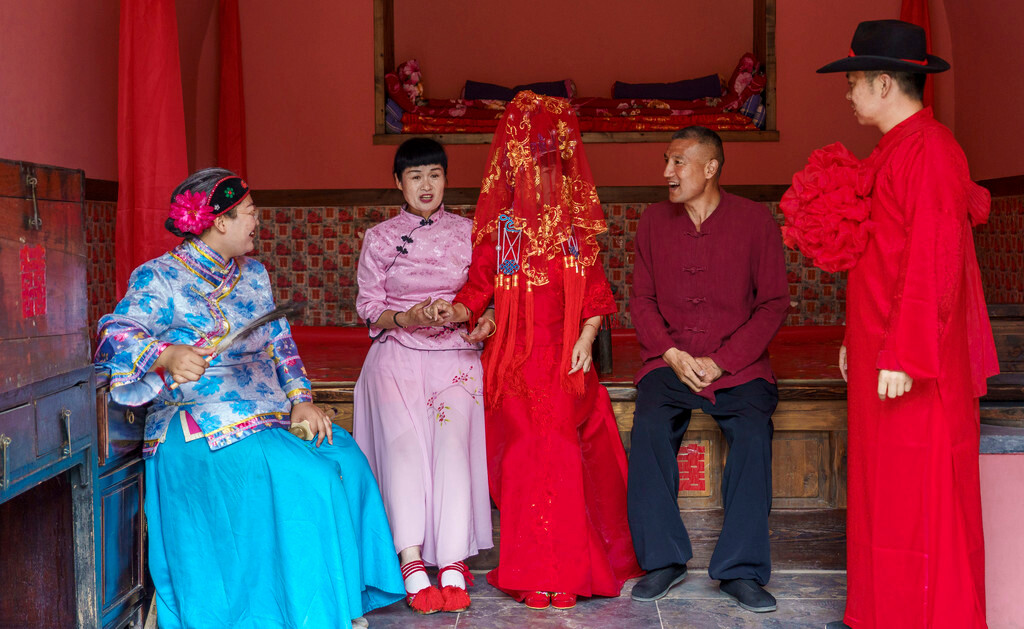 顺利把新人送进洞房之后,还有“闹洞房”的环节,当然这里的闹洞房可不是胡闹,而是由老者主持走正常的习俗流程,看着还是很有趣~