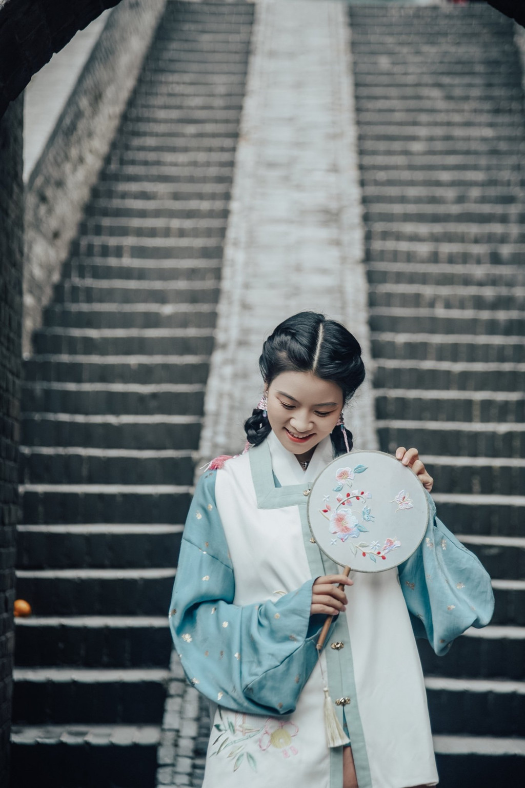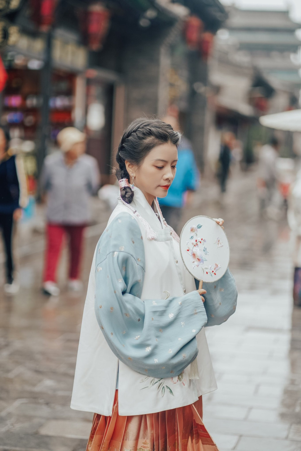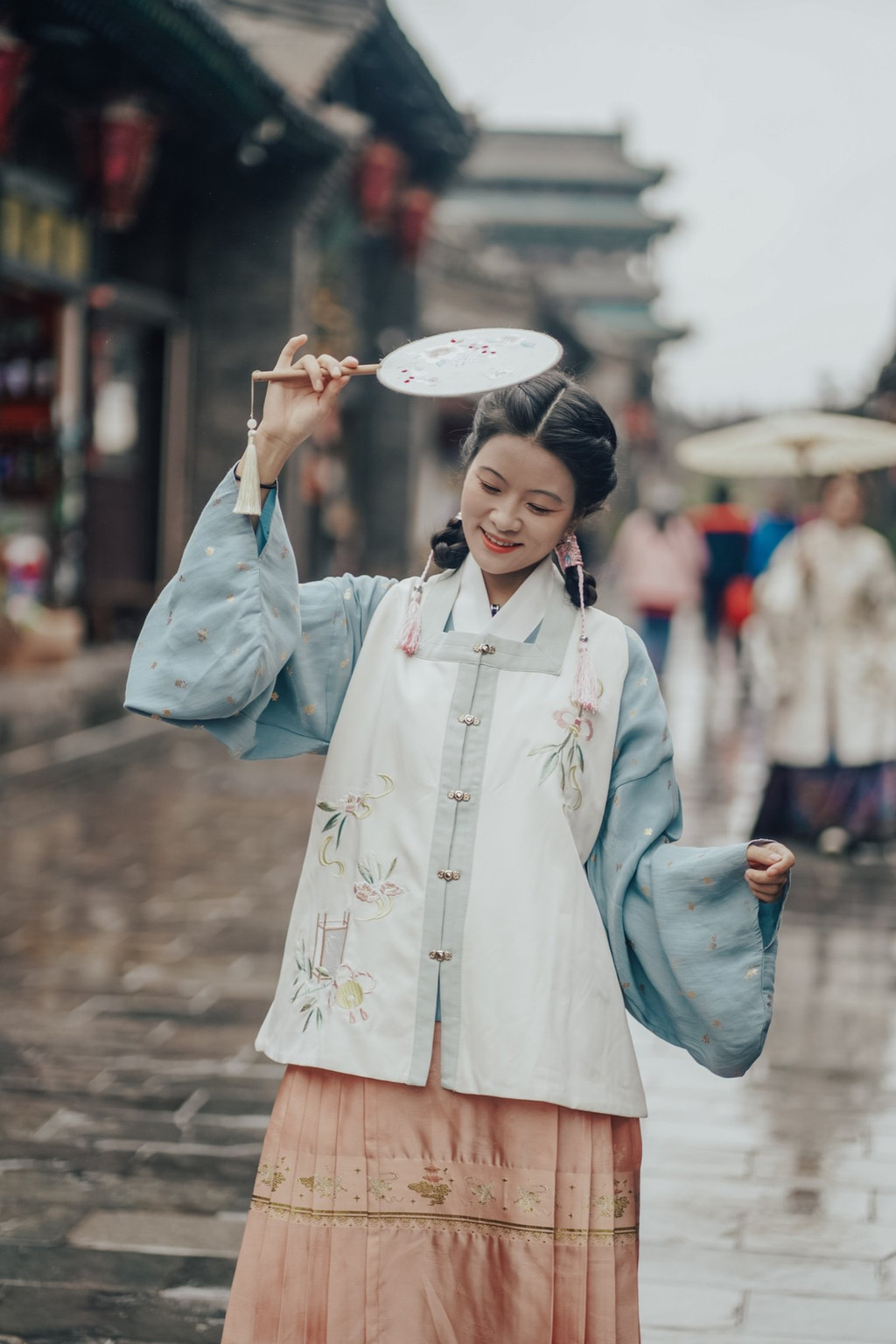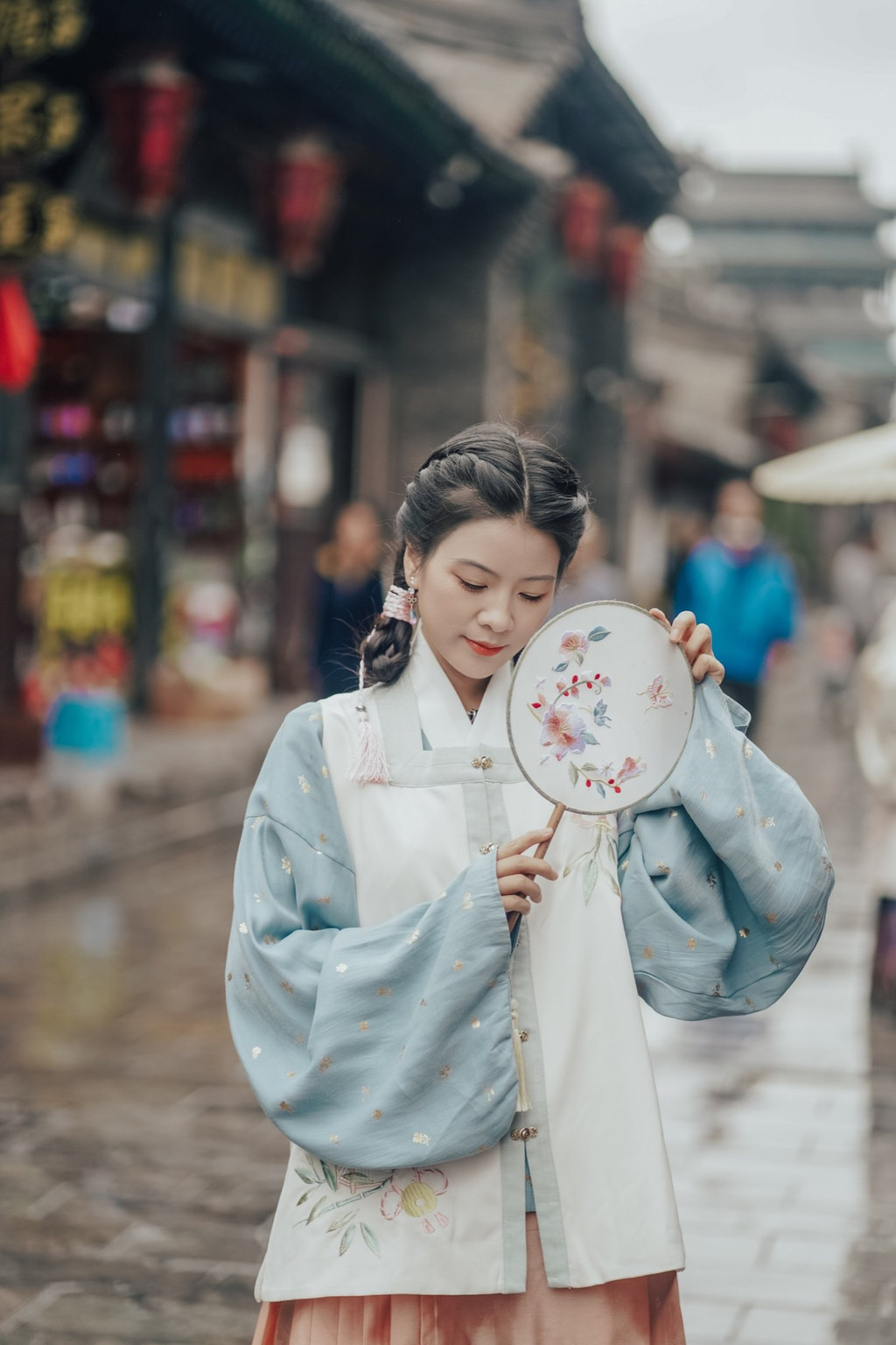 而今,千帆过尽,古城里民风和乐,原住民与游客络绎不绝,明清街巷熙熙攘攘,岁月风平。穿一袭汉服,做一日晋商老爷府上的千金,团扇一握,俨然大家闺秀的作派。