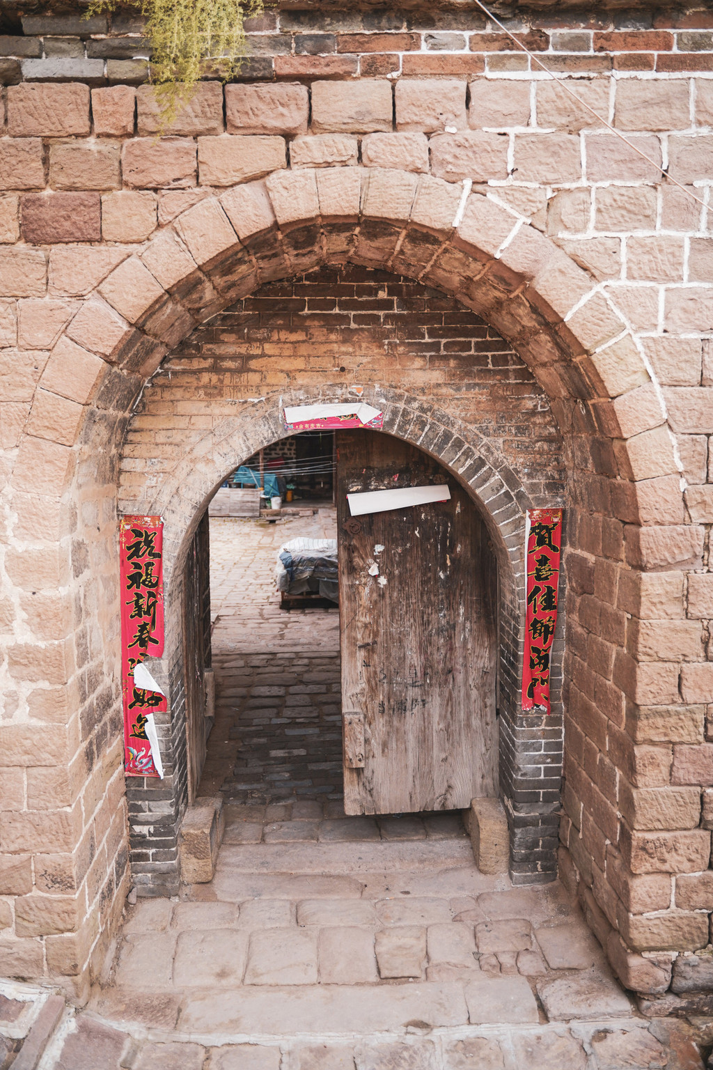我们傍山而行,原住民傍山而居。古镇里有不少拱形的桥洞和门洞,均为北方建筑形态。一座座拱形门让我联想到了南方的廊桥,只不过一个下面是山shi