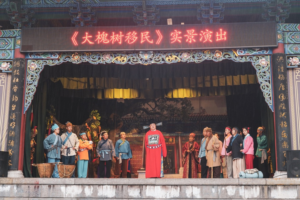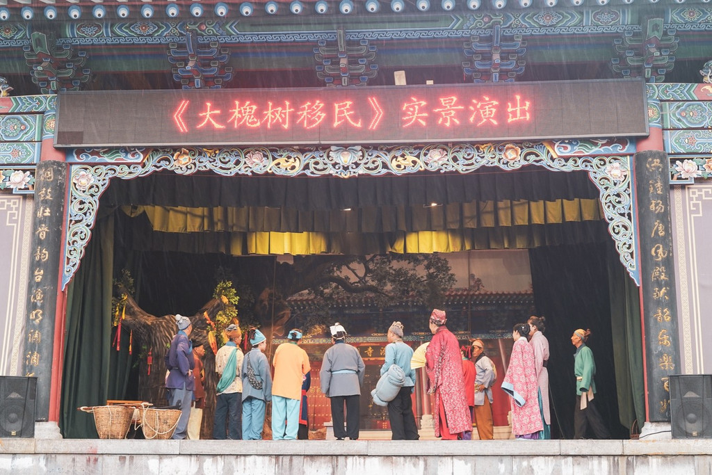 这世上最动听的声音便是乡音,景区内汇聚了大小演艺节目20余个,全天循环演出,生动形象地再现了600年前发生在大槐树下的移民场景。