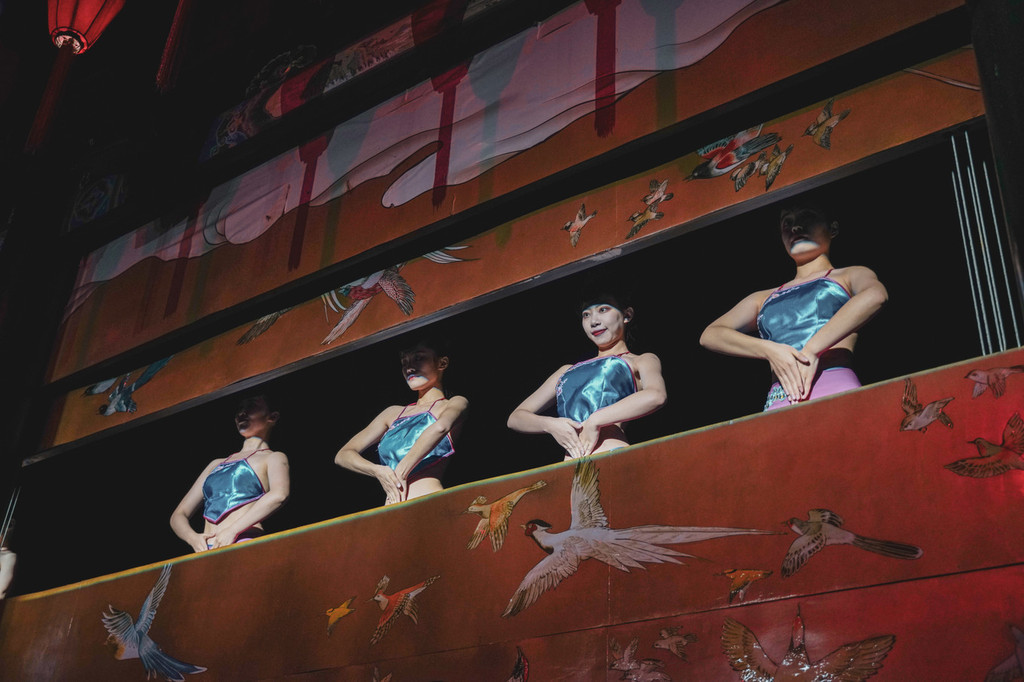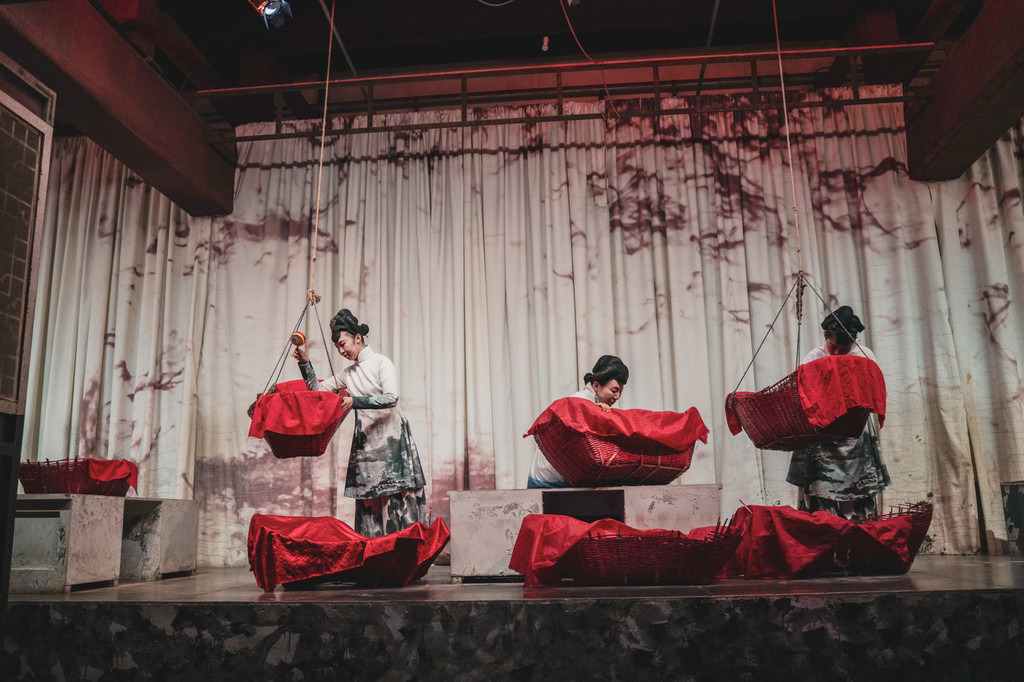 沉侵式的演出,没有座位,没有舞台与观众席的界限,我们从纷繁的碎片中窥视故事端倪,就像穿越了千年的看客,见证着古城的起落。