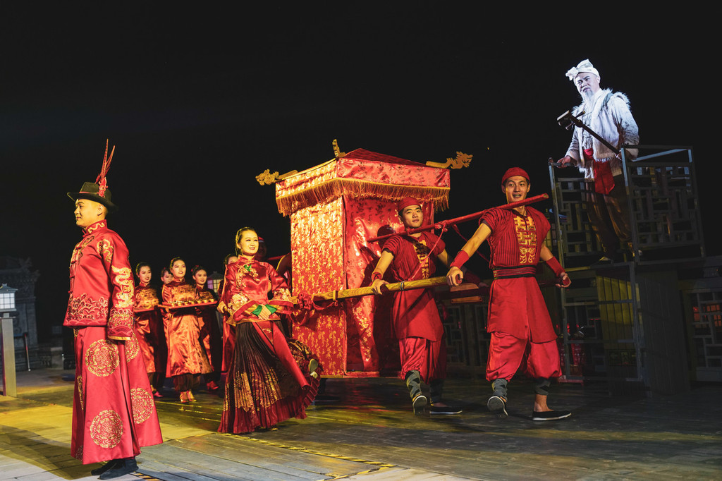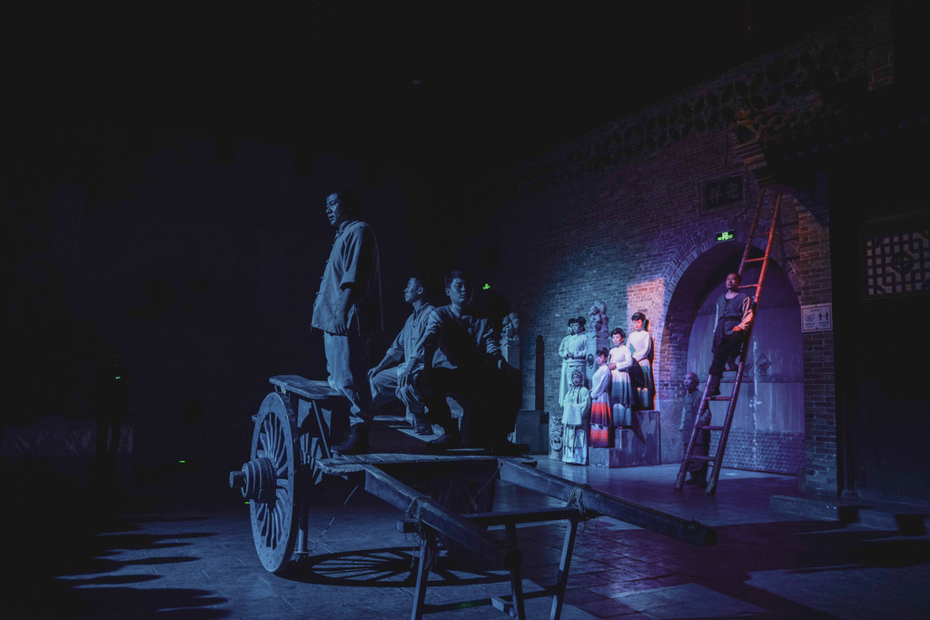 整个演出通过“选妻”、“镖师洗浴”、“灵魂回家”、“面秀”等等片段,凸显了 平遥 人的道德传统,也将悲壮直面在人们面前,不知不觉便融入了剧情,成为其中一员。
