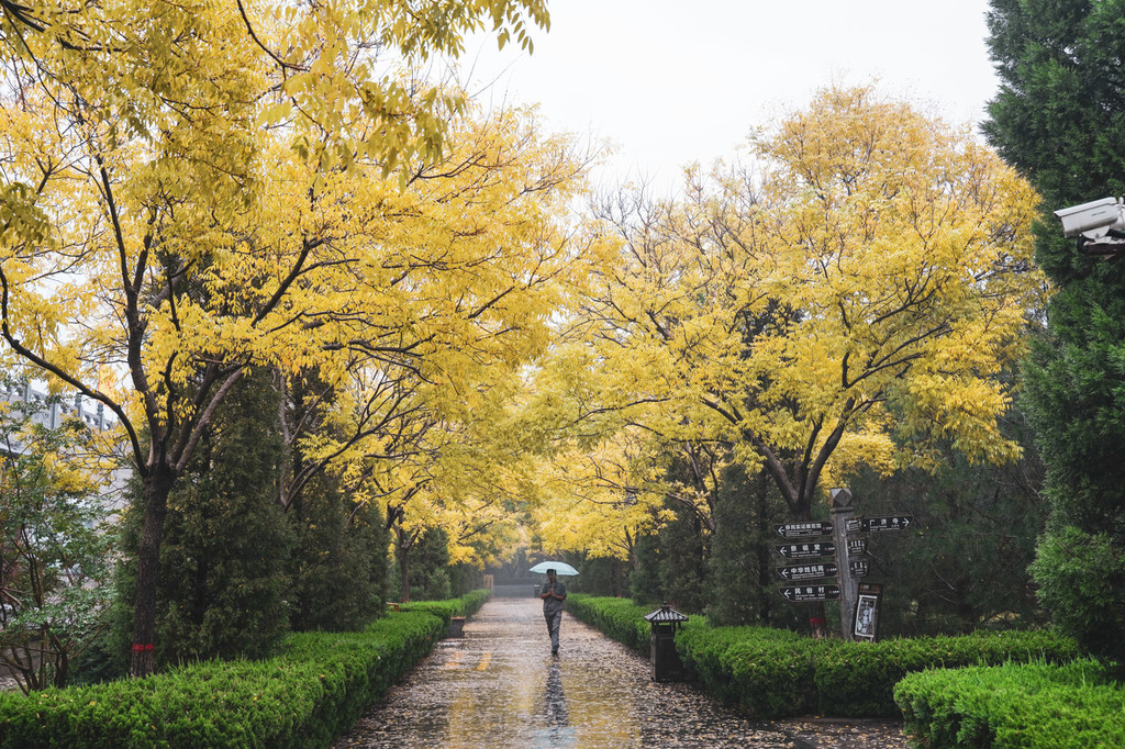 秋雨拂面,却丝毫不影响摄影师按快门的速度。