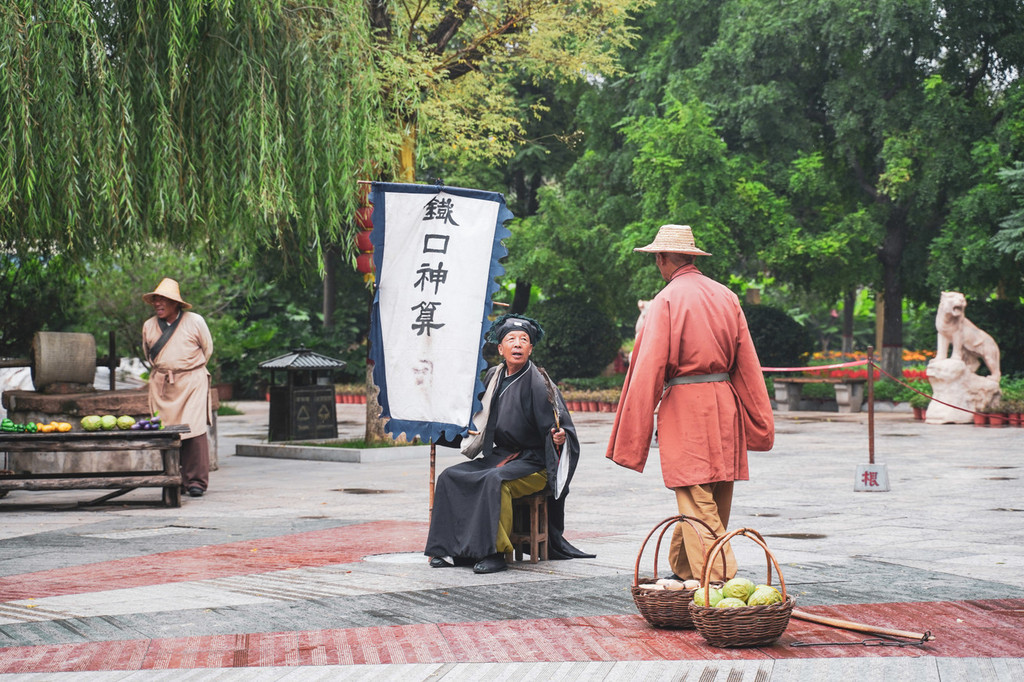 东边叫卖着新鲜的果蔬,西边是好吃的冰糖葫芦,还有手执羽扇的铁口妙算四处张望。