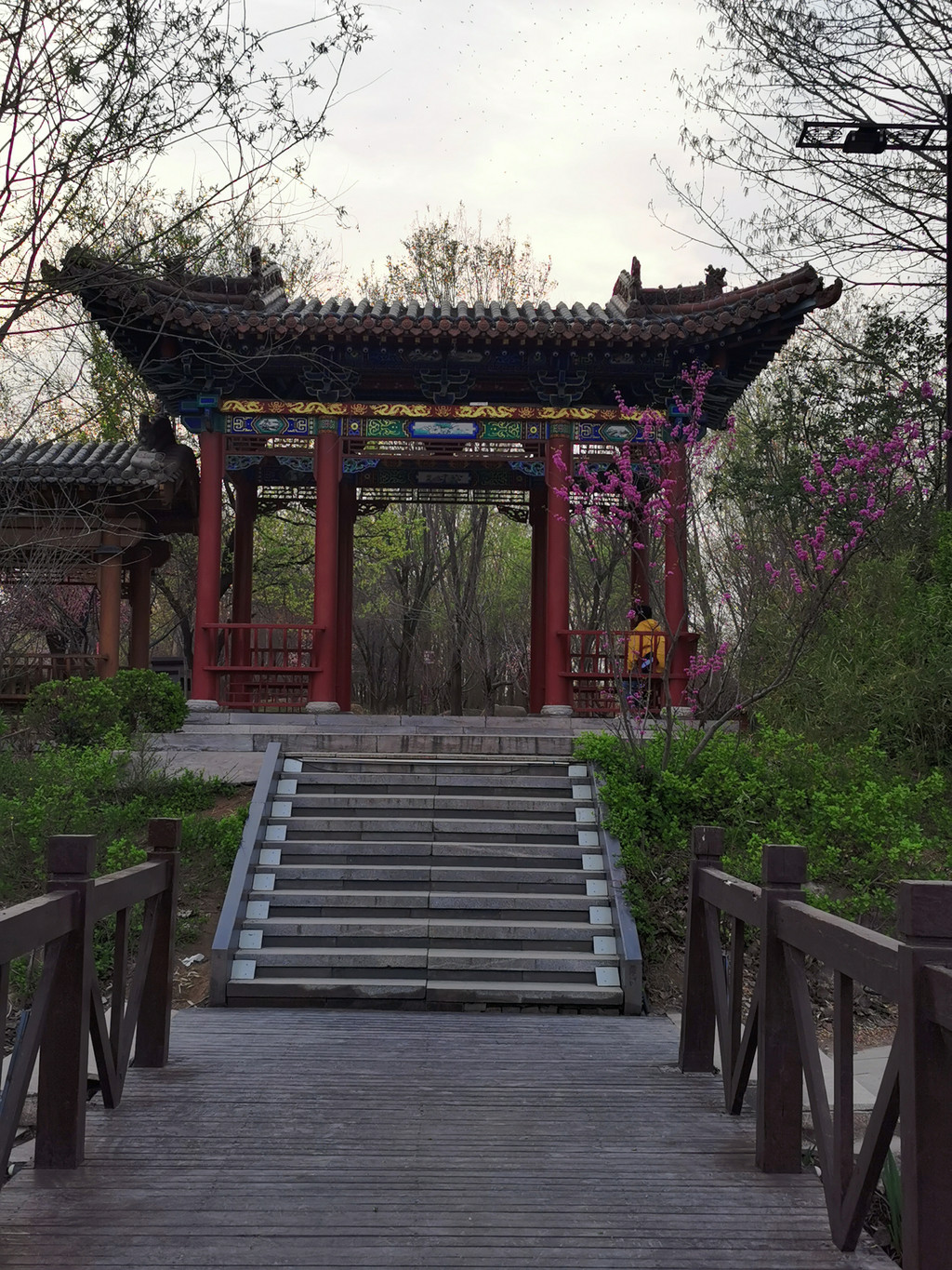 公园人很少特别清净,走在其中花红柳绿水清很是惬意。