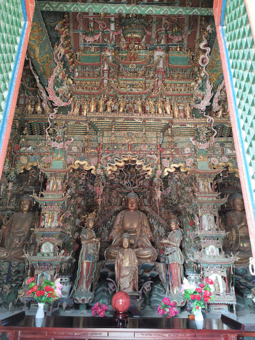 大雄宝殿内的明代泥塑乃是小西天的精华所在,满殿泥塑的各种菩萨神灵、亭台楼阁、神楼佛龛、等等等等令人目不暇接,经过400多年依旧光彩夺目,美到让人窒息。