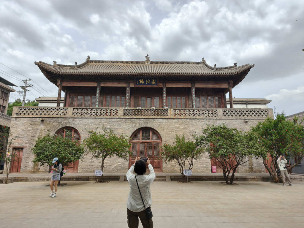 上午10点多结束铁佛寺的游览,出门一条小路,步行不远就到临汾平阳鼓楼。平阳鼓楼又名大中楼,位于山西省临汾市城中心,基座呈正方形,周长160米,楼高43.76米,依云逼日,为中国现存最高的鼓楼。始建于北魏,楼上存有金明昌七年(1196年)年铸2500余公斤大铁钟一口,其基座乃正方形,建筑面积1600平方米,四向券砌门洞在其基座正中十字相交,平阳鼓楼以其高大雄伟著称于世,反映了古代劳动人民的聪明智慧和高超的建筑技艺。千百年来,邑中父老引以为荣,外地游客有口皆碑,此楼实堪为帝尧故都古老文明的象征。于1948年毁于战火。1983年,临汾市人民政府成立修复鼓楼委员会,倡议全市人民集资捐款修复鼓楼。1984年开工,1986年恢复原貌。此楼可以免费登顶,但是楼上除了几幅展板,别无他物。