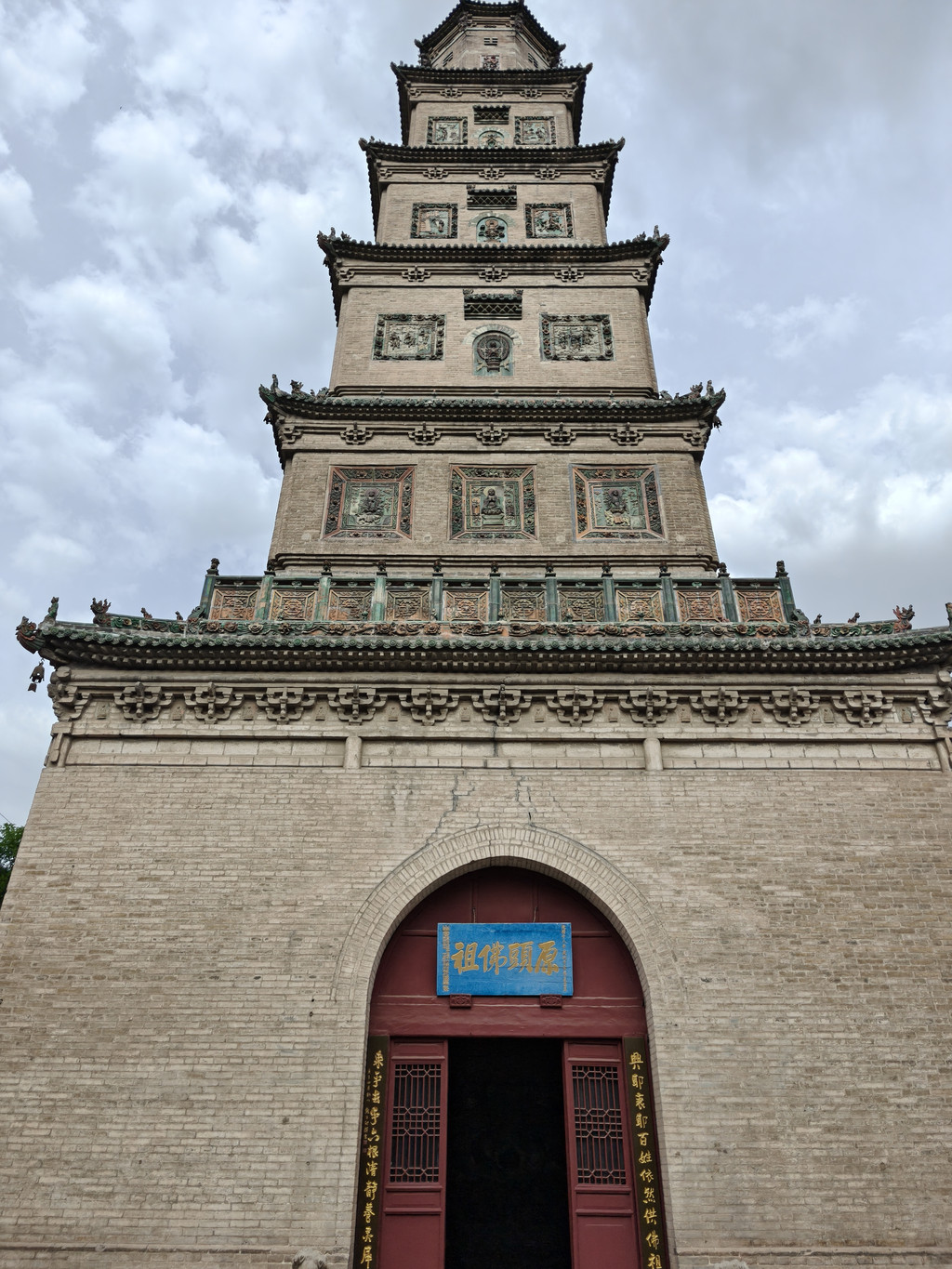 铁佛寺塔不能攀登,只可在底层和外围欣赏,底层只有孤零零一尊佛头,外层塔壁上有浮雕砖刻,栩栩传神。寺院内有一小型博物馆,民俗工艺等等。