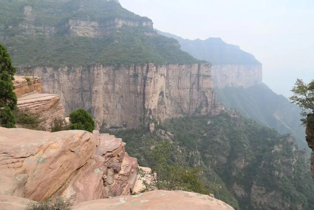 沿着抱犊沟而下,随即看到一个这个绝美的地方,丹崖绝壁美到惊艳。大断崖。巍巍八百里太行山,在这里突然断裂下去,形成一个落差500米,长达百公里的超级断裂带。让人叹为观止!