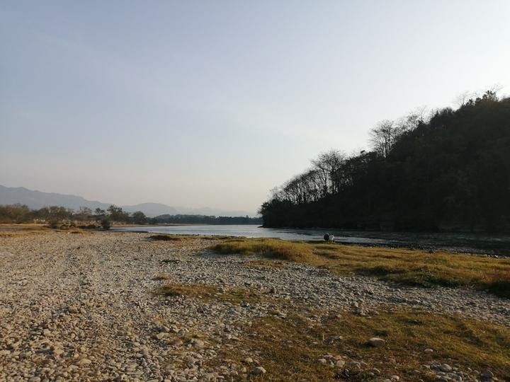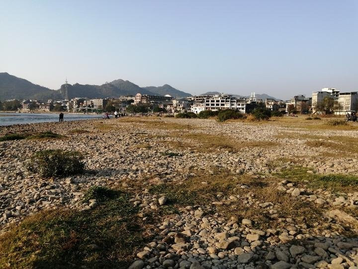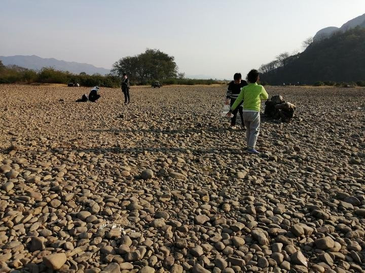 这片河滩边的水很干净,如果夏天的话,更好玩。不过夏天可能水量大,河滩被淹没。