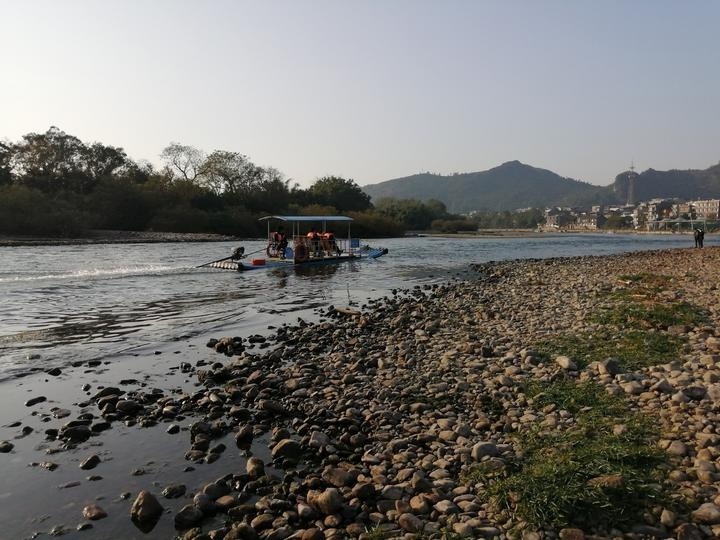 再往前,竟然发现这里还有宽阔的河滩,以前来都没见过,可能因为今年漓江水位低,才现出一大片河滩,河滩上都是鹅卵石,倒是很合适小孩子玩。