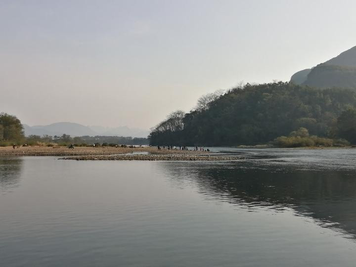 沿着河滩继续往前,这片河滩伸出漓江上很长