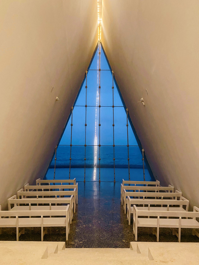 除了为一楼的直通泳池房型而来,这里最火爆的当属酒店旁边的沿海教堂了,日出和余晖时刻的美很让人怀念。