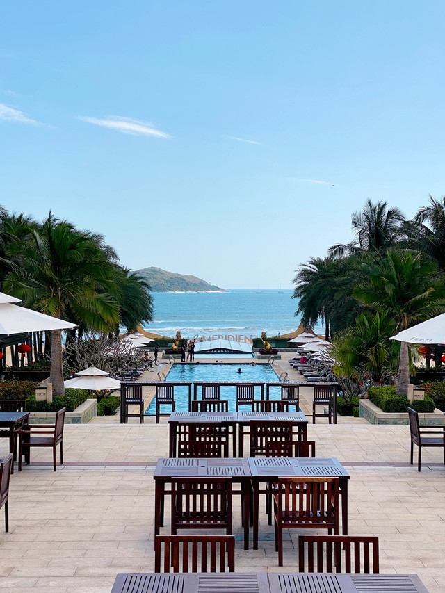沿海边有两家温德姆,一家是评分较高,价格也略贵几十的“豪庭温德姆”,风格偏商务一些,而我选择的南国温德姆偏古堡欧式风情,更温馨一些,看地理位置,豪庭是处在一个半岛上,阳台景色面对的是港湾,而南国面朝的是真正的大海,那肯定是大海景色更美呀!果断就选这里啦!