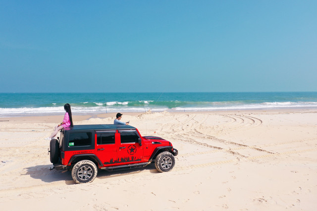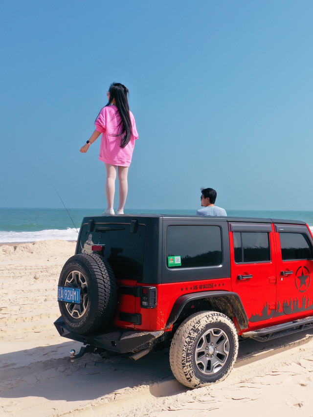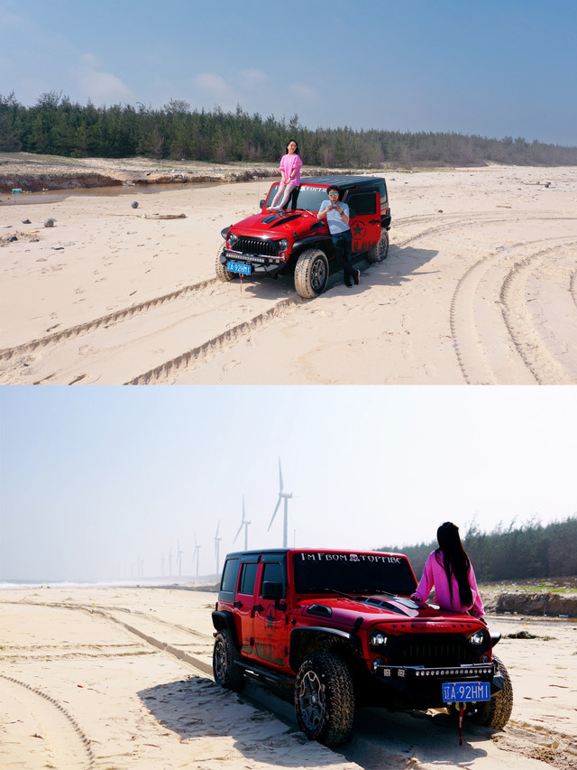一直以来都很喜欢的牧马人,之前去国外连着几次租牧马人,但实际却给了别的车型,这次终于在 海南 如愿以偿的租到了,还跑了遍沙滩,太满足了!但我们这款车型是Rubicon,其实更适合跑石头的地面,跑沙滩车身太重了,容易打滑陷车;跑沙滩还是Sahara比较合适。