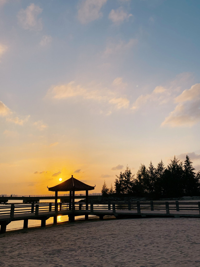 融创日月湾的沿海边建了一座非常美的白色教堂,早晨可以欣赏日出,傍晚有唯美的余晖,亮起灯的教堂更美;搭配着两边的椰林,可以尽情的在整片大草地上撒欢拍照。