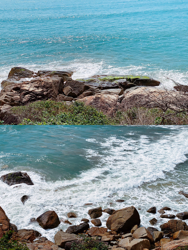 而这一次在龙头岭,我们在人山人海的沙滩旁找到了一个和毛里求斯相似的地方!而且没有毛里求斯那么辛苦(只是有那么点费膝盖…),就能独自承包美景啦!