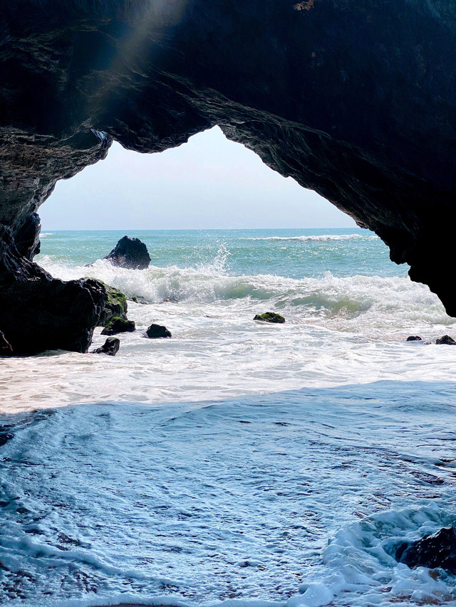 沿着海一直往东走就到了网红的“燕子洞”啦!传说有上万只燕子居住在此地,所以取名燕子洞;一路沙滩上走过来都没什么人,原来大家都挤在这里呢!洞内非常的凉快,一路暴晒走过来瞬间觉得特别降温。