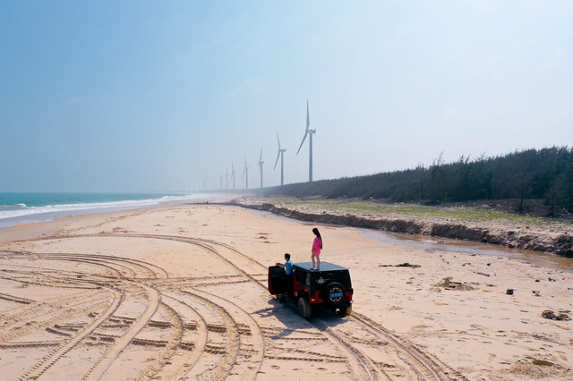我们来这里最大的目的是想尝试把越野车开进沙滩里,想要享受一下紧挨着大海旁驾驶的感觉;沙滩越野路线的入口有两个,我们当时先来到的是地图定位的“木兰湾”,停车场旁边有两栋土房,问一下当地人就会告诉你车开进沙滩的入口了,但是当地人并不建议我们从这里驶入,据说我们来的前一天,来了一个专门玩越野车队,下去一辆车陷一辆车…
