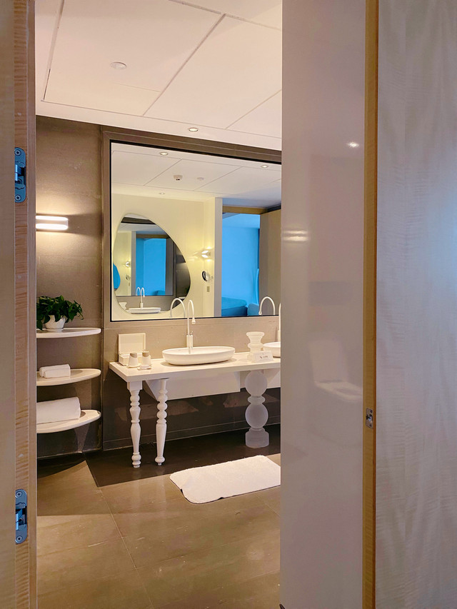 这家酒店其实躺在我的收藏夹里好几年了,顶楼的阳台直通泳池房曾经刷爆了某音,不过6000+/晚的价格还常年爆满我就不考虑啦~ 看中这里主要是喜欢大床房的布局,床是面朝着大海的,洗手台也是开放式正对着阳台,早上从起床那一刻到刷牙洗脸都面对着大海,一天的心情都会变得很好呀!