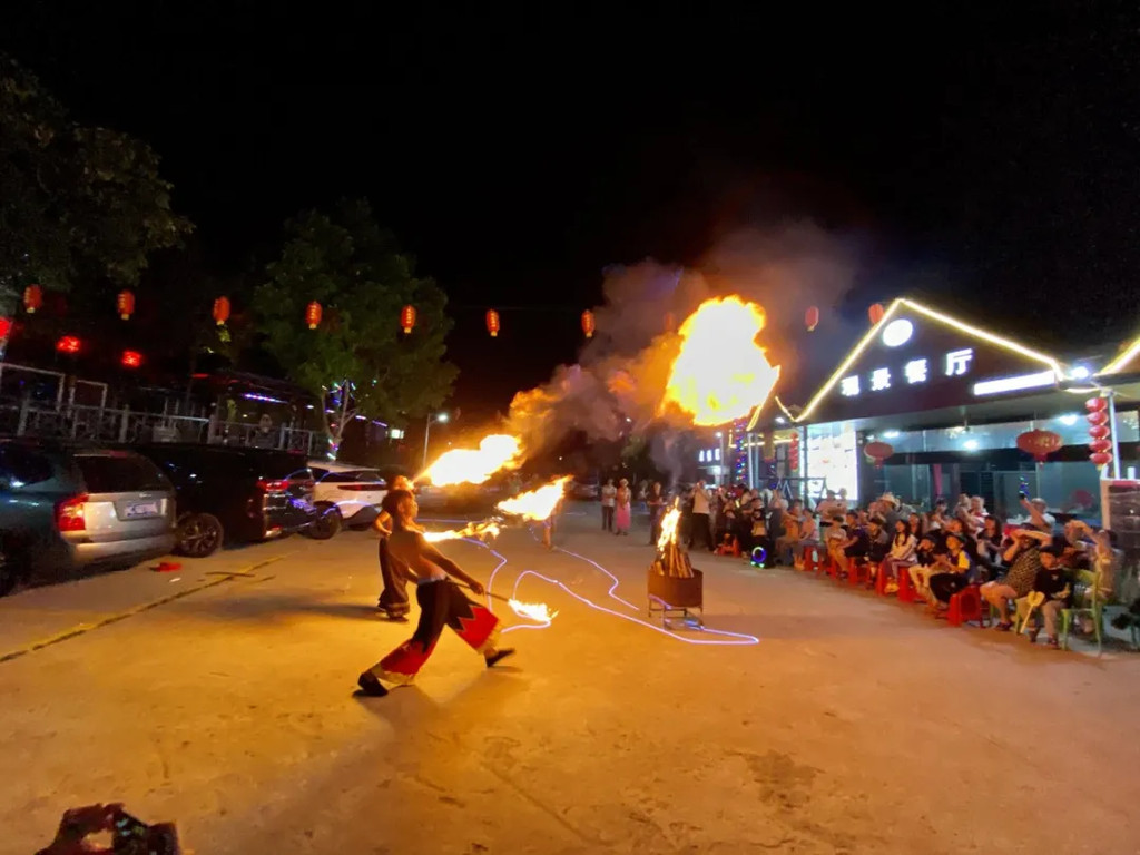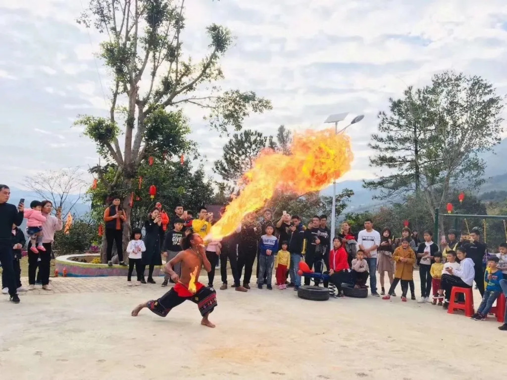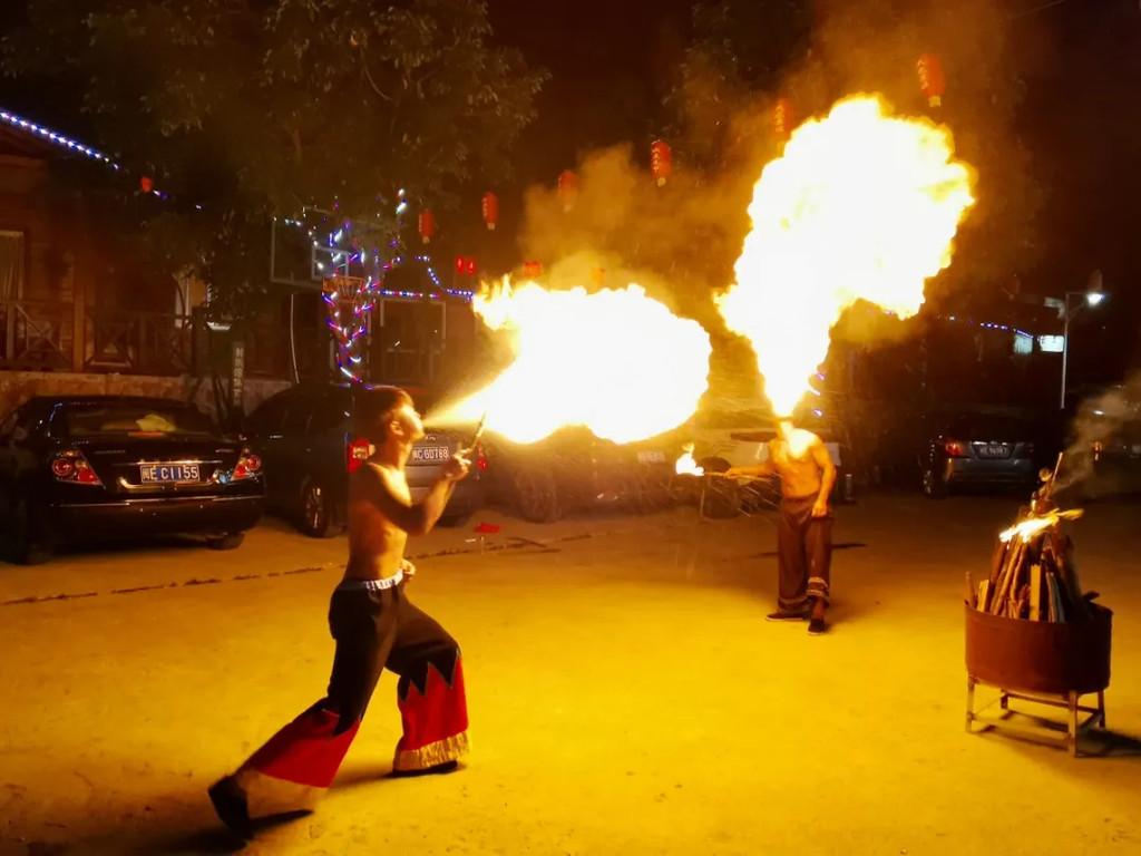 佤族竹竿舞,玩火喷火绝活