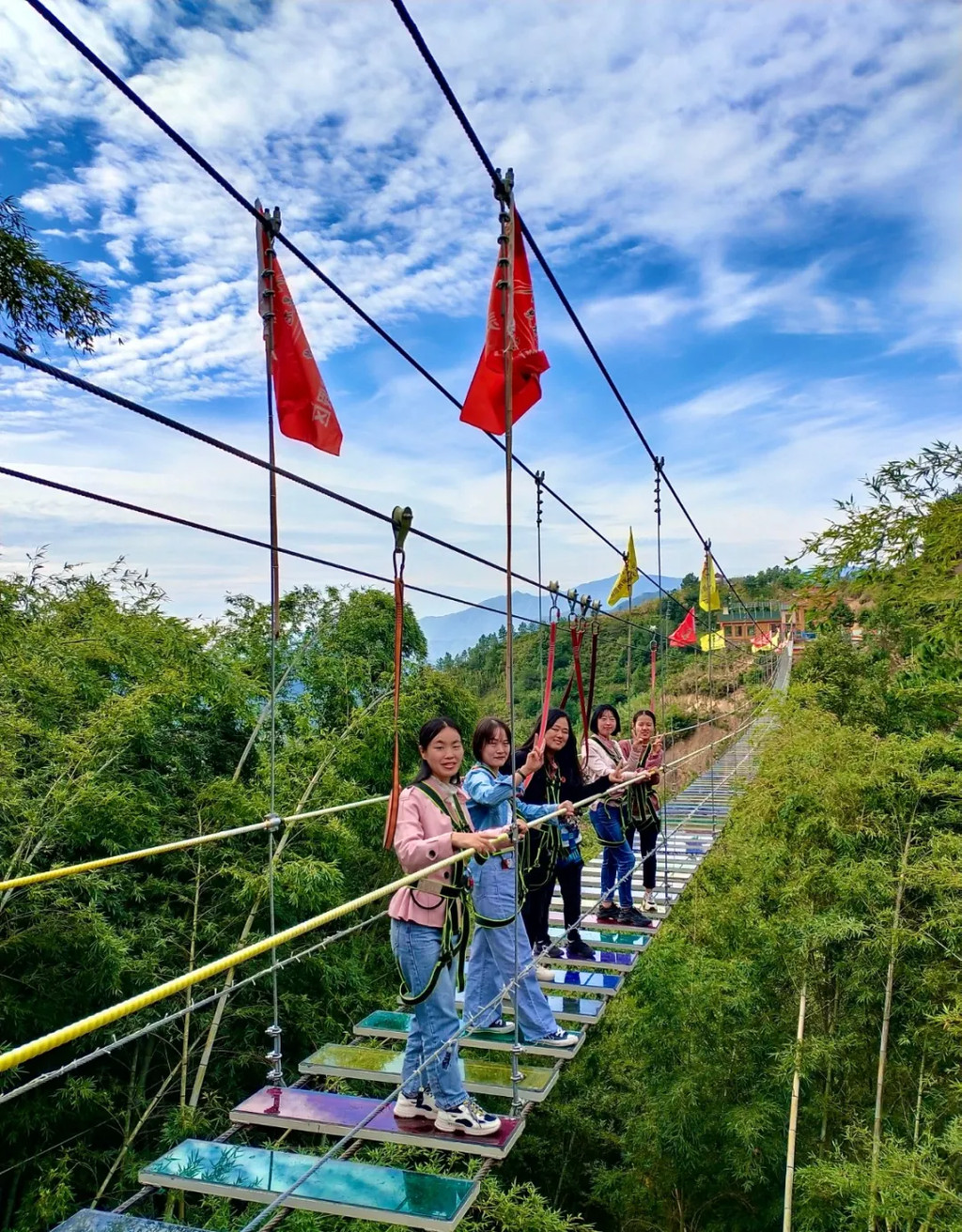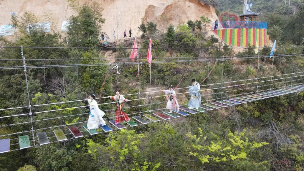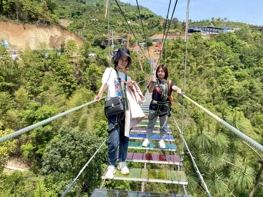 玻璃桥上的游客