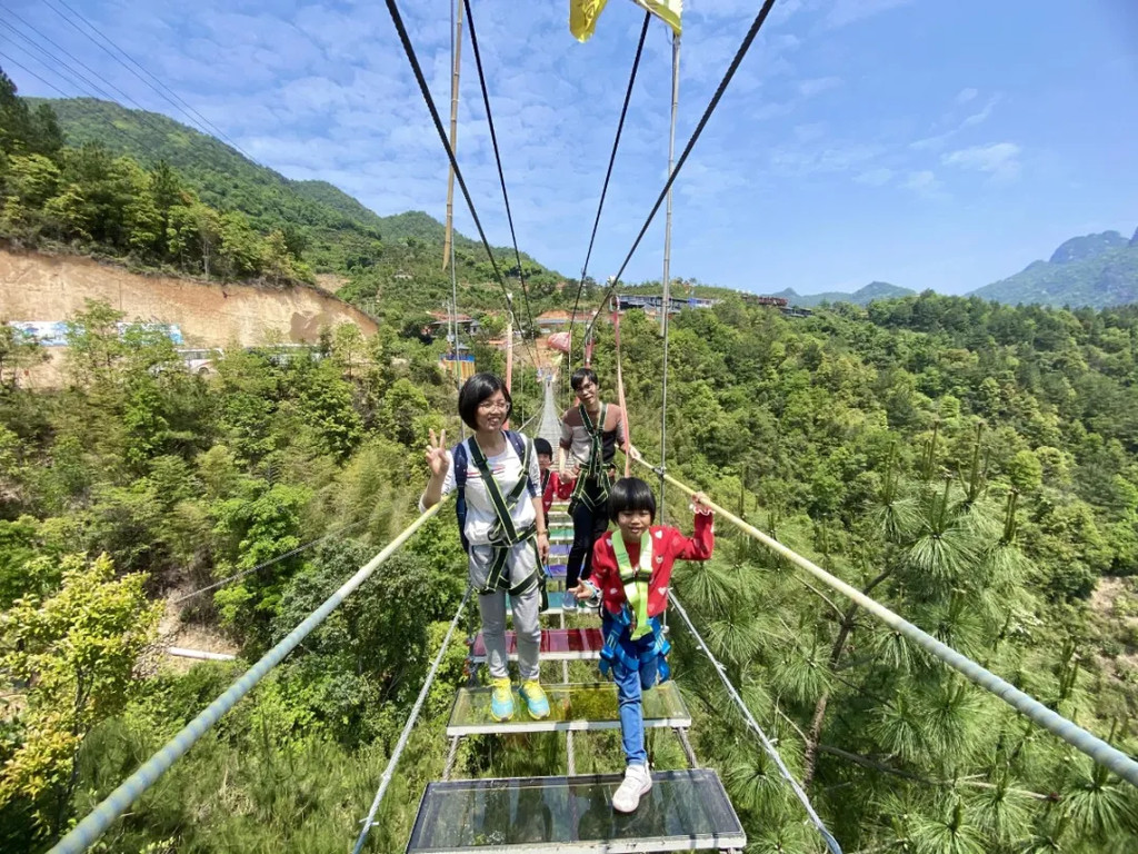 假期第一天上午,灵龙谷景区停满了各式旅游车辆。游客们络绎不绝地汇入景区,从喧嚣的都市来到这绿水青山的世外桃源,从第一站开始玻璃栈道,每个人脸上都充满期待的眼神。