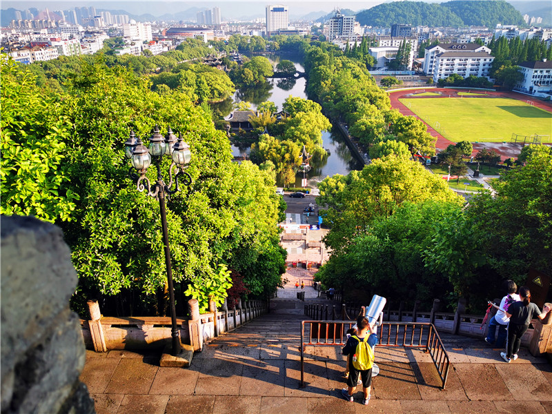 下山后我们计划去台州府城,这里是被成为江南长城的景点。因为下山到景区已经下午二点。我们先在景区里的紫阳古街找了家快餐店用餐。然后通过体温检测进入景区。城墙上的游客还是蛮多的,整个城墙依山而建,旁边是灵江。当年戚继光为了抵御倭寇入侵而修建的。