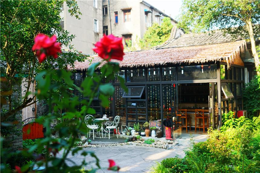 如果在老街上没有合适自己心情的咖啡,那不妨来到云朵姐姐的秘密花园吧,这里也是我喜欢紫阳老街的原因之一。云朵姐姐的民宿,是一座建于民国时期的老宅,旧时候是临海一代富商孙宁乡的故居,小小的院落,被云朵姐姐打理成了一个秘密花园,坐在醉花阴,喝上一杯手工调制的小酒,就是一个美好的夜晚。
