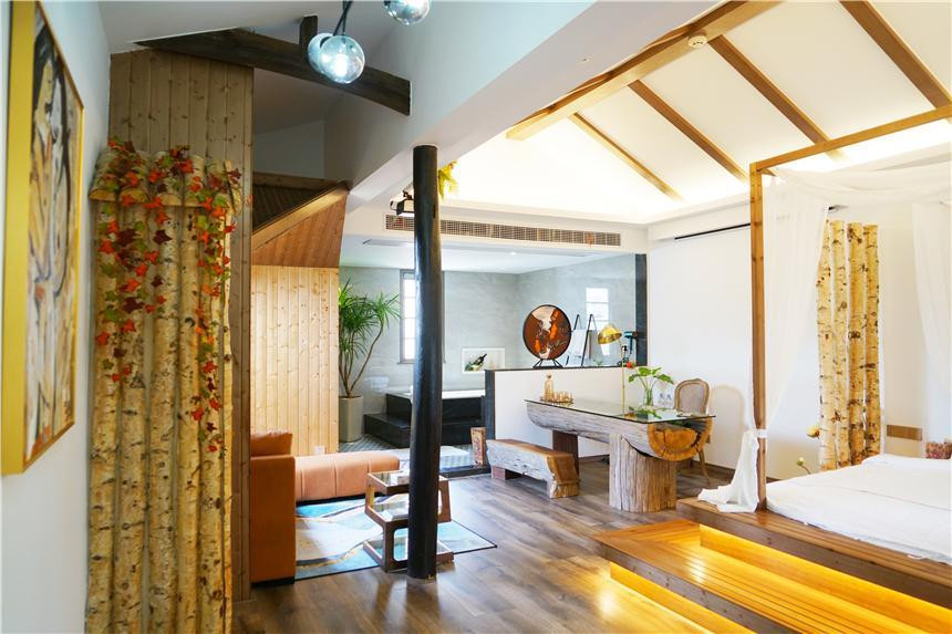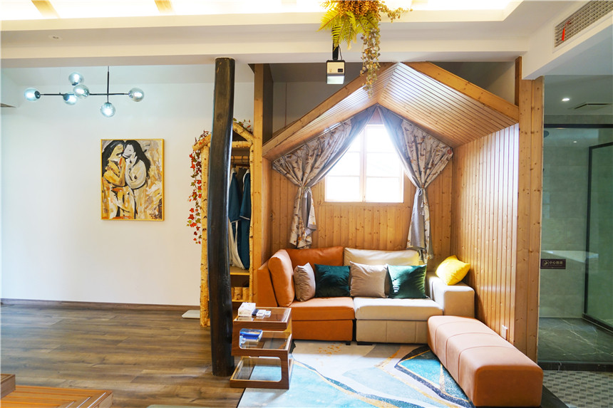 住合欢大床房,宽敞明亮的空间,充满了设计感,简约北欧风格,绿色的植物蓬勃生长,一切都恰到好处,我喜欢生命里只有单纯的盼望,只有一种安定和缓慢的成长 ,这也是我喜欢民宿的原因。