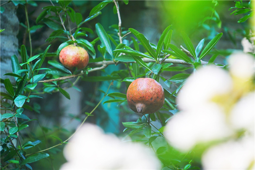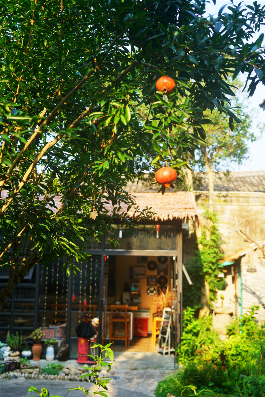推开古朴的木栅栏,秘密花园里的果树,石榴树、柚子树上都结满了果实,在时光中静待冬雷夏雨,春华秋实 ,有着属于人间烟火的美好。
