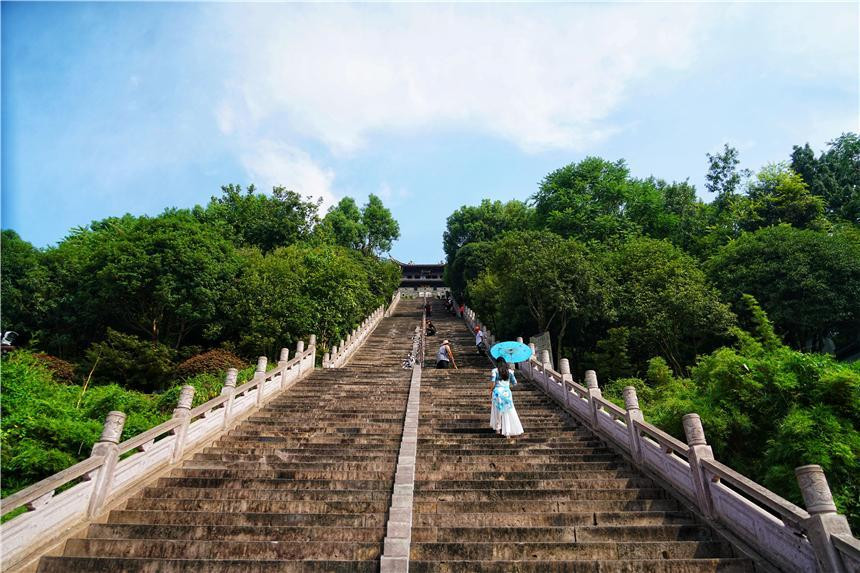 巾山为什么说很特别呢?还有一个原因就是山腰建有南山殿塔,西有多宝塔。一砖一佛,共千余尊,又叫千佛塔,加上顶峰上的两座宝塔,一山四塔,在我国的国内很少会看到。山上有超过百年的古树108棵,其中有一棵古樟树已经有600多岁的高龄,高22米,依然很繁茂。