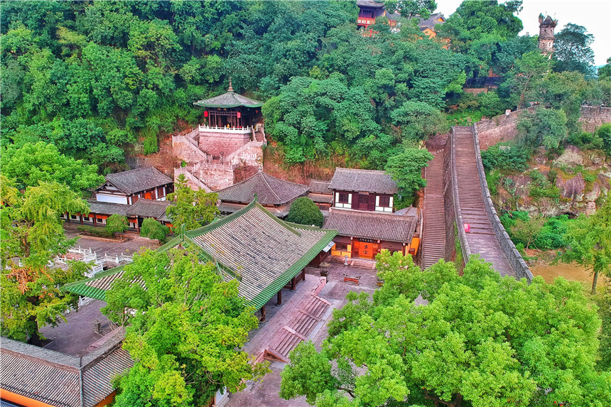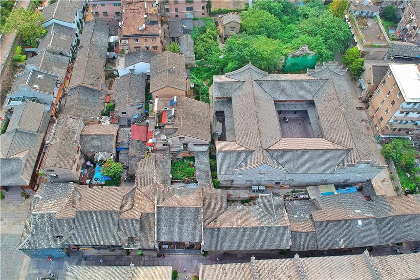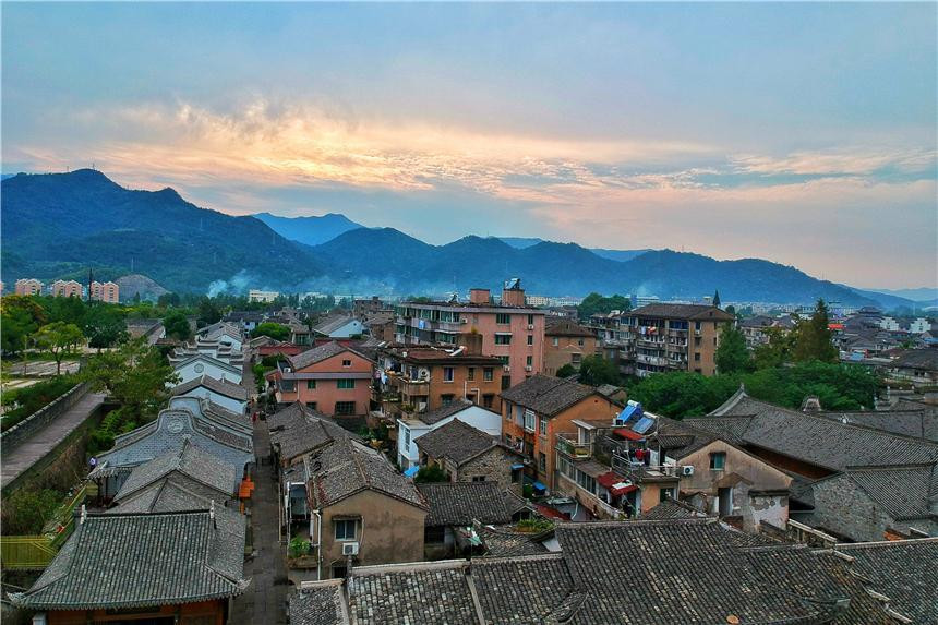 从空中俯瞰,可以更直观的感受紫阳古街的全貌,据历史记载,一直到了民国时期,紫阳古街还没有街名的记载,当地人就按照古迹、人名、地名而称呼这条街的所在地,两千多米的街道因为不同的叫法,拥有了五十多个不同的名字, 当时称街的北端黄坊桥,南头揽秀楼,中间地段,从北至南称紫阳宫、一洞天、奉仙坊、十字街口、迎仙坊、白塔桥头、方一仁、德清巷口、牌门周、腊巷口、安乐天、炭行街等50多处地名,一直到了九十年代,才正式叫做紫阳街。