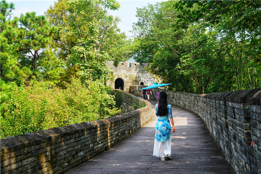 秋高气爽的季节,和三两好友一起相约,走进江南长城,沿着古老的城砖,寻觅属于江南长城的过往历史,刚看到城门的时候,很多小伙伴可能会觉得这么多的台阶,江南长城也太难爬了,其实走了门口这一段之后,后面的长城还是很平缓的。