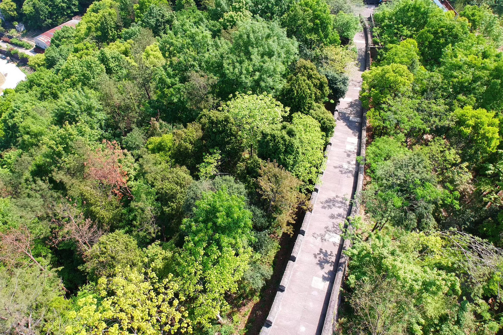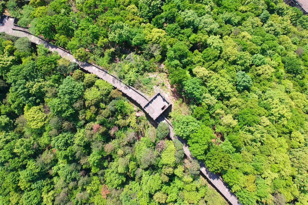 空中航拍江南长城,可以更直观的感受长城的蜿蜒,江南长城最开始修筑的时候,总长度有6000余米,经历了漫长岁月的变迁,战乱和洪水,如今我们看到的江南长城剩下了5000余米,东起揽胜门,沿北固山山脊逶迤至烟霞阁,于山岩陡峭间直抵灵江东岸,延伸至巾山西麓,依山就势,俯视大江,尤以北部最峻。