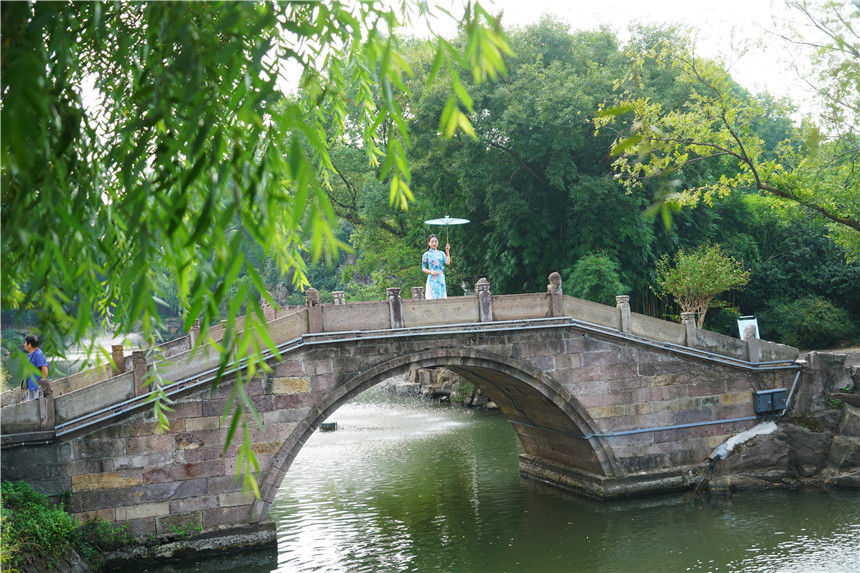 身穿古典服装的江南女子,撑着一把油纸伞,慢悠悠的从石桥上走过,蔓延的绿色,是深深浅浅的清丽,画面唯美而动人。东湖风景清幽,水域面积也很大, 湖东景区由:伊水山庄、荣兴堂、临海历史博物馆、东湖碑林组成;湖心景区由:湖心亭,半勾亭,骆临海祠,樵云阁、逢源亭、樵夫祠遗址组成;后湖景区由:琪水园、小鉴湖、海礁苑组成。如果要细细游览,需要一整天的时间。