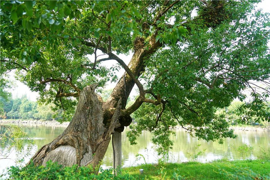 东湖自然风景秀丽,湖畔有很多古树,有的已经有好几百年的历史了,依然生长的枝繁叶茂,清澈的湖水,倒映着湖畔林木的倒影,微风轻轻吹过,湖面的倒影随着水波的荡漾而摇曳摆动,却越发显得风致了。