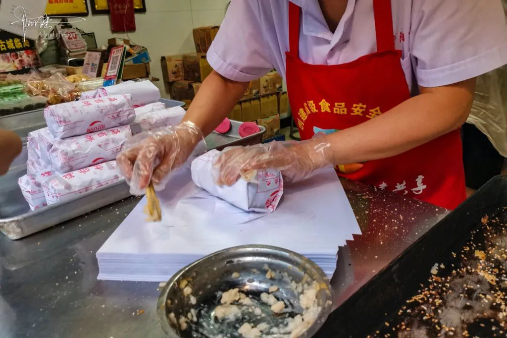 店员的手脚麻利,但即使速度再快,也阻挡不了门前的队伍越来越长,因为很多人并不是只买十几二十个,一出手就是上百个。说实话,这小吃真的算是“物美价廉”,如果不是为了拍照,我也想排一两个小时,带个十几筒回家,送朋友送家人,或者自己吃,都是挺好的。