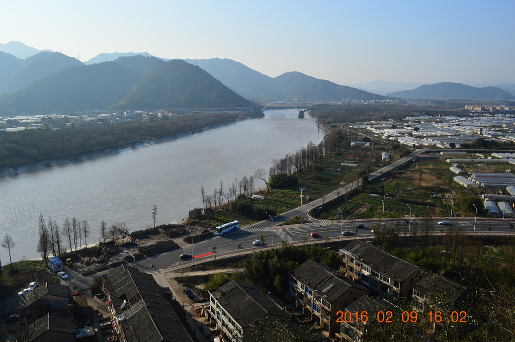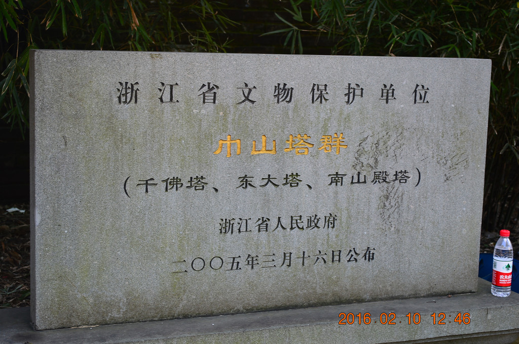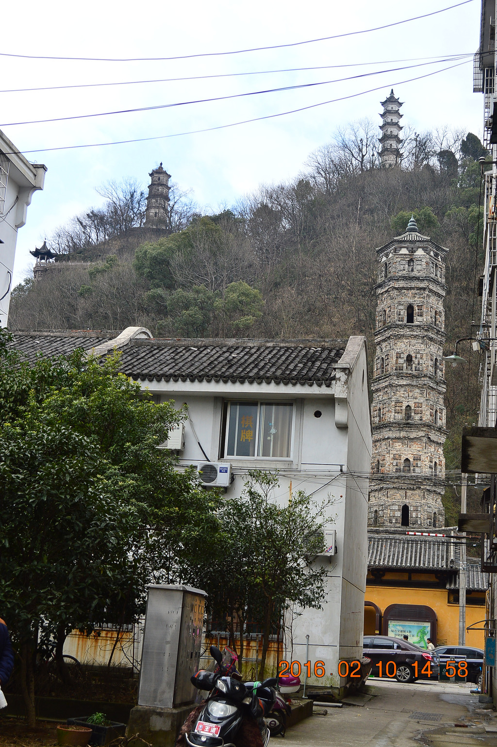 江边的巾山上有多座古塔。巾山塔群(千佛塔、东大塔、南山殿塔)为浙江省文物保护单位。